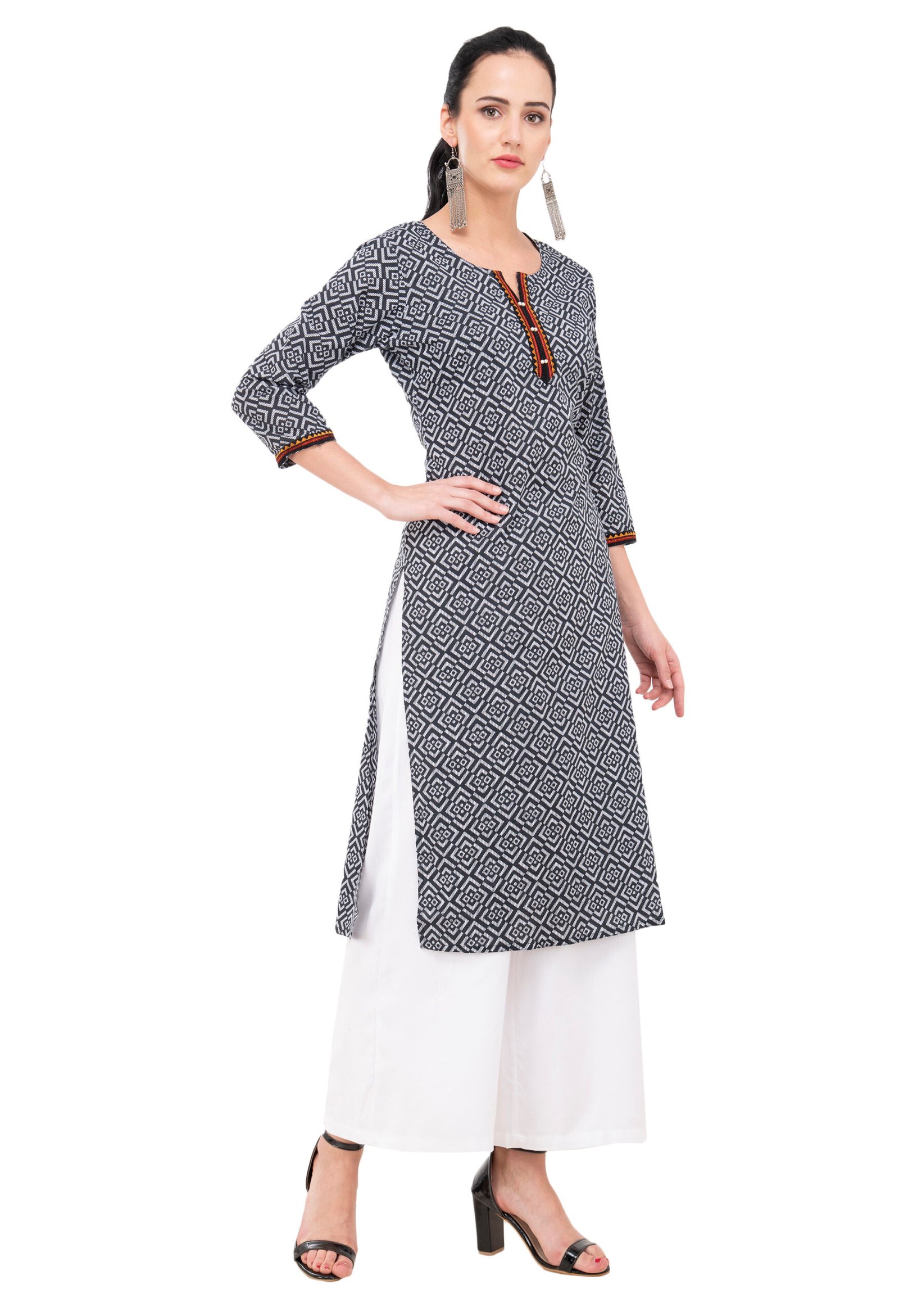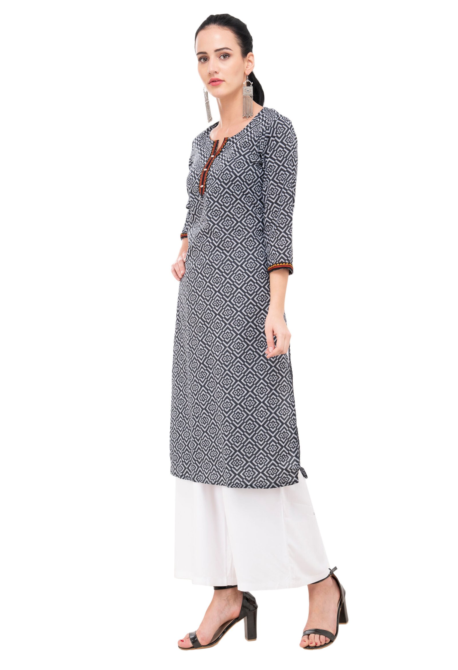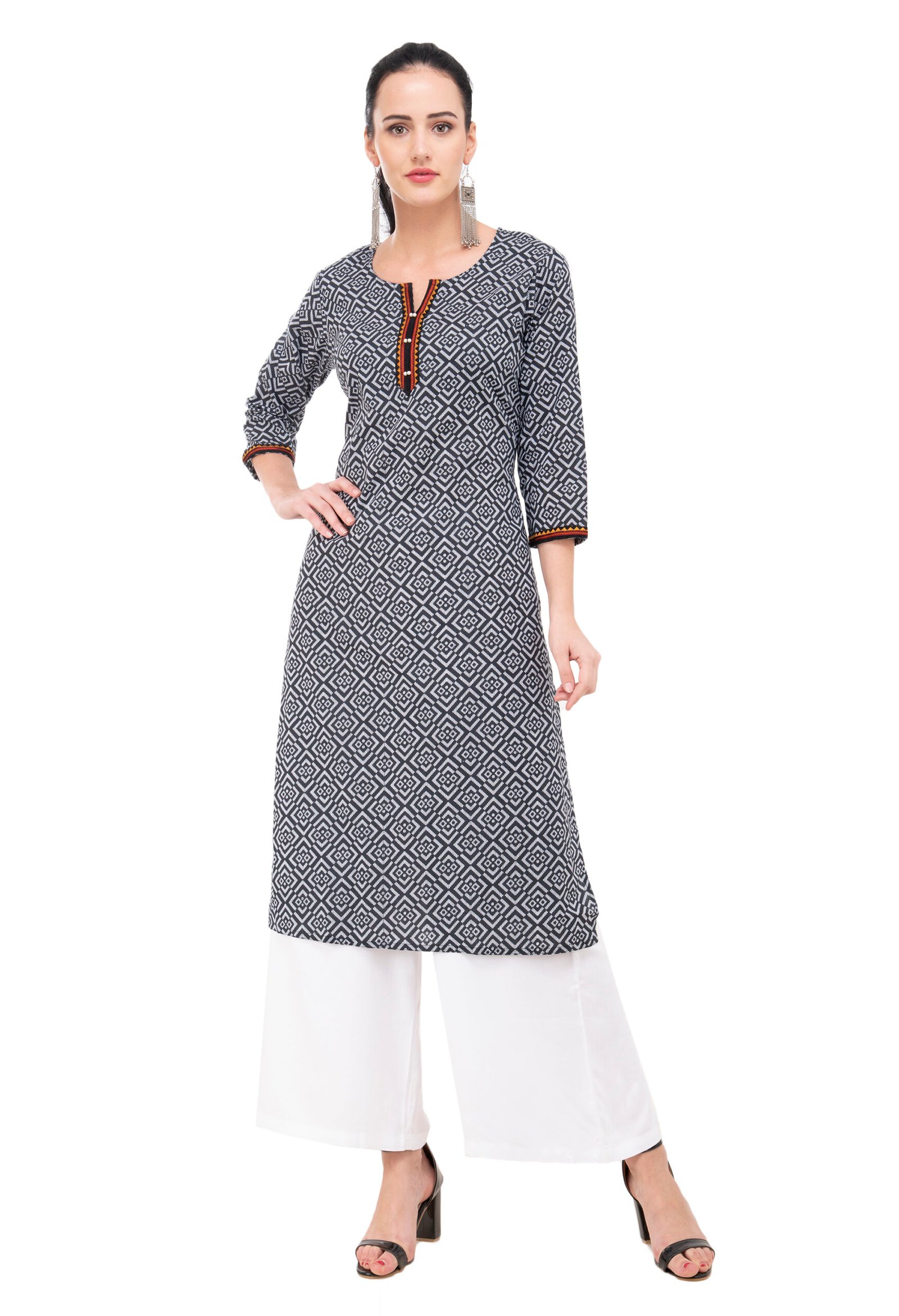 Black Pure Cotton Printed Stylish Straight Kurta, Kurti for Women