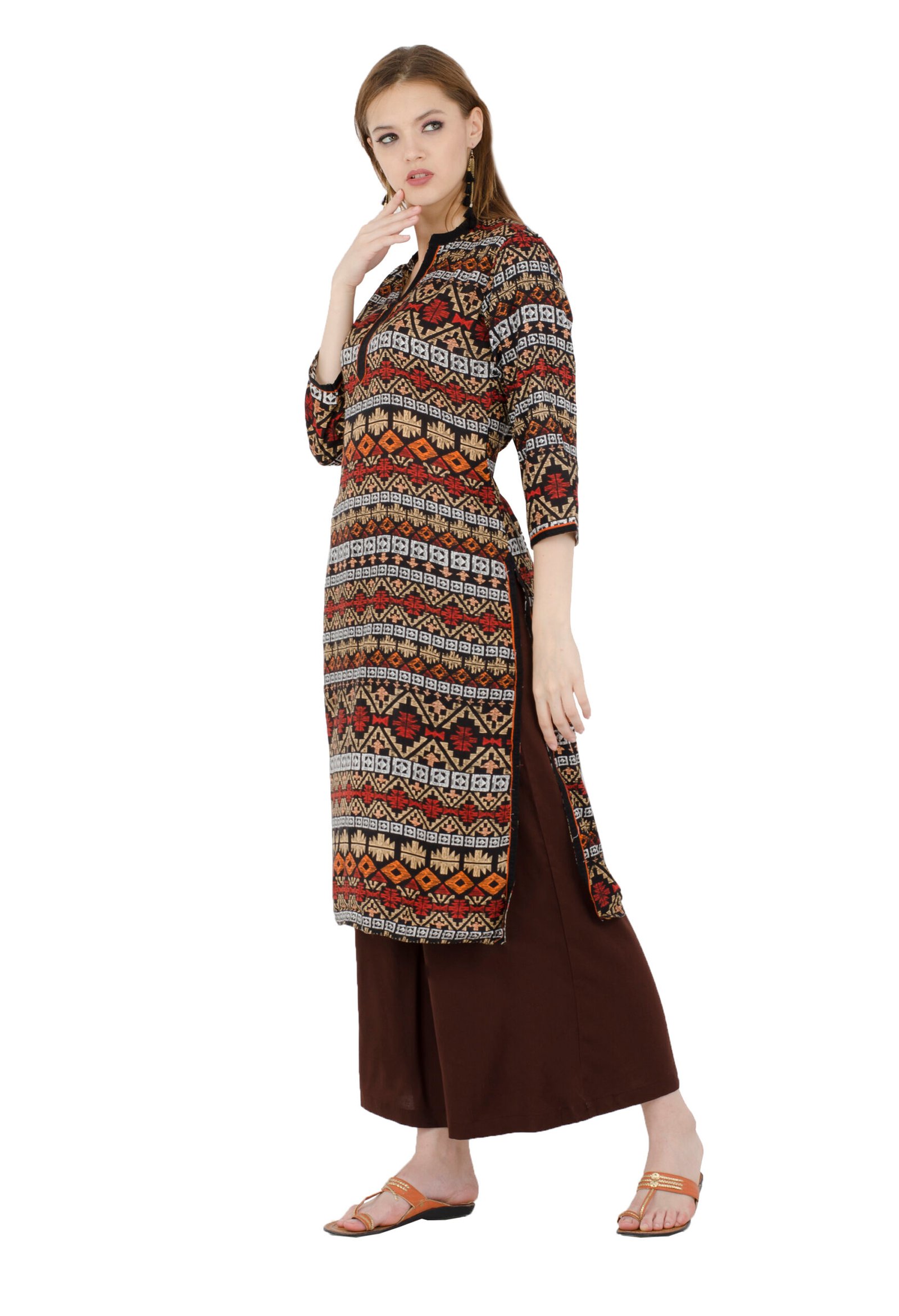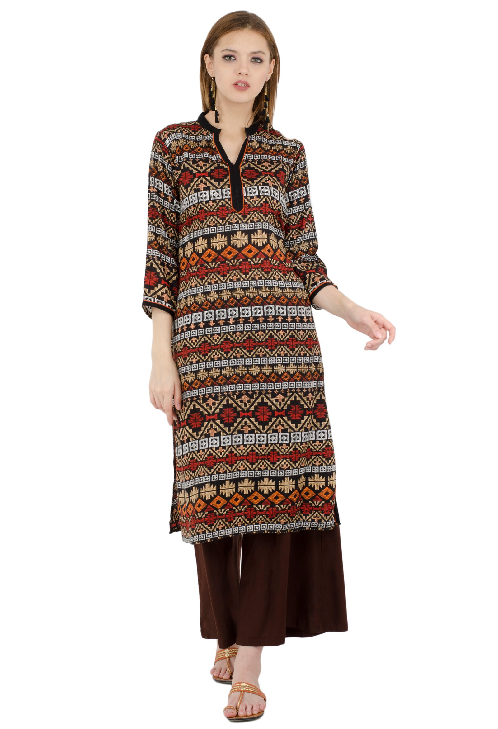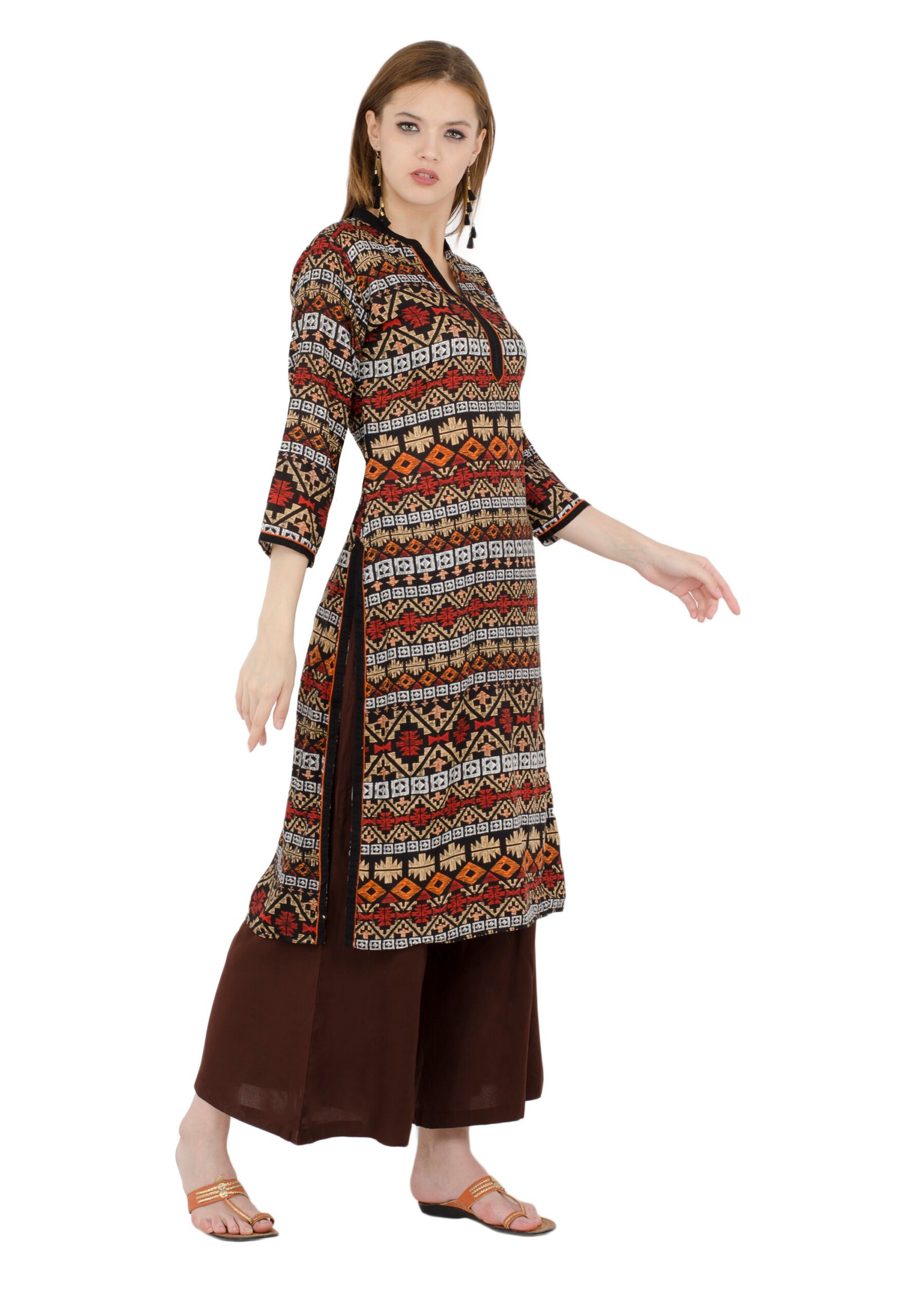 Black Rayon Printed Stylish Straight Kurta, Kurti for Women