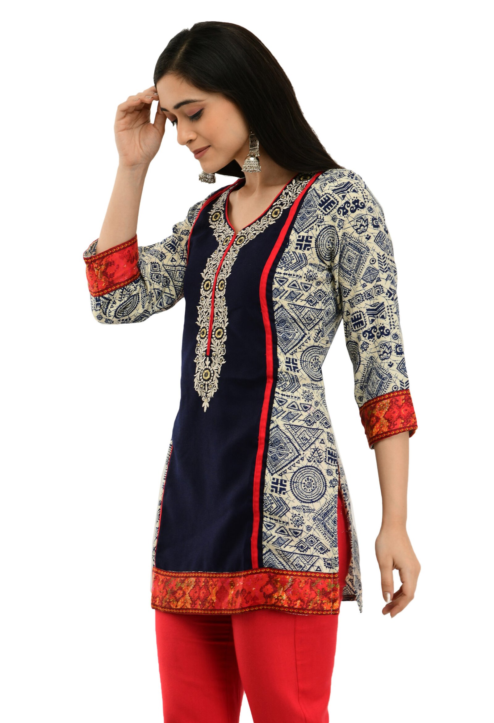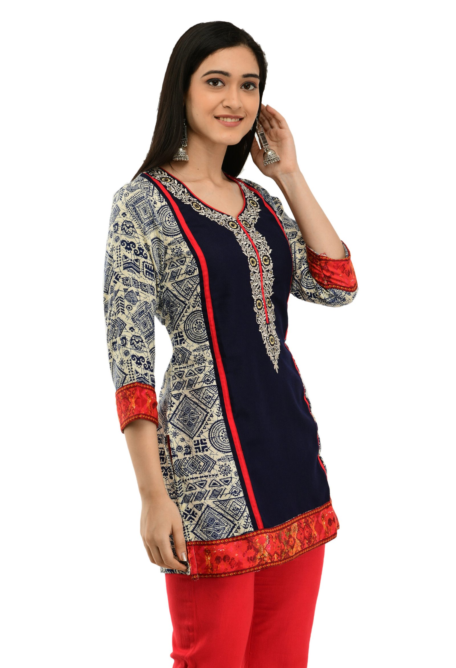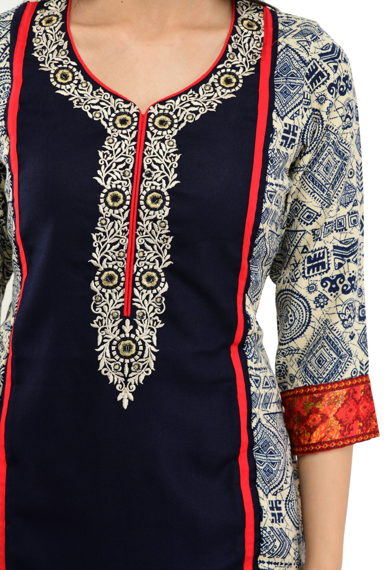 Elevate your ethnic wardrobe with this stylish Blue Poly Blended Straight Kurti for women. Featuring elegant embroidery and 3/4 sleeves, it offers a perfect blend of comfort and fashion. Ideal for casual outings or festive occasions, this kurti adds a touch of sophistication to your everyday look