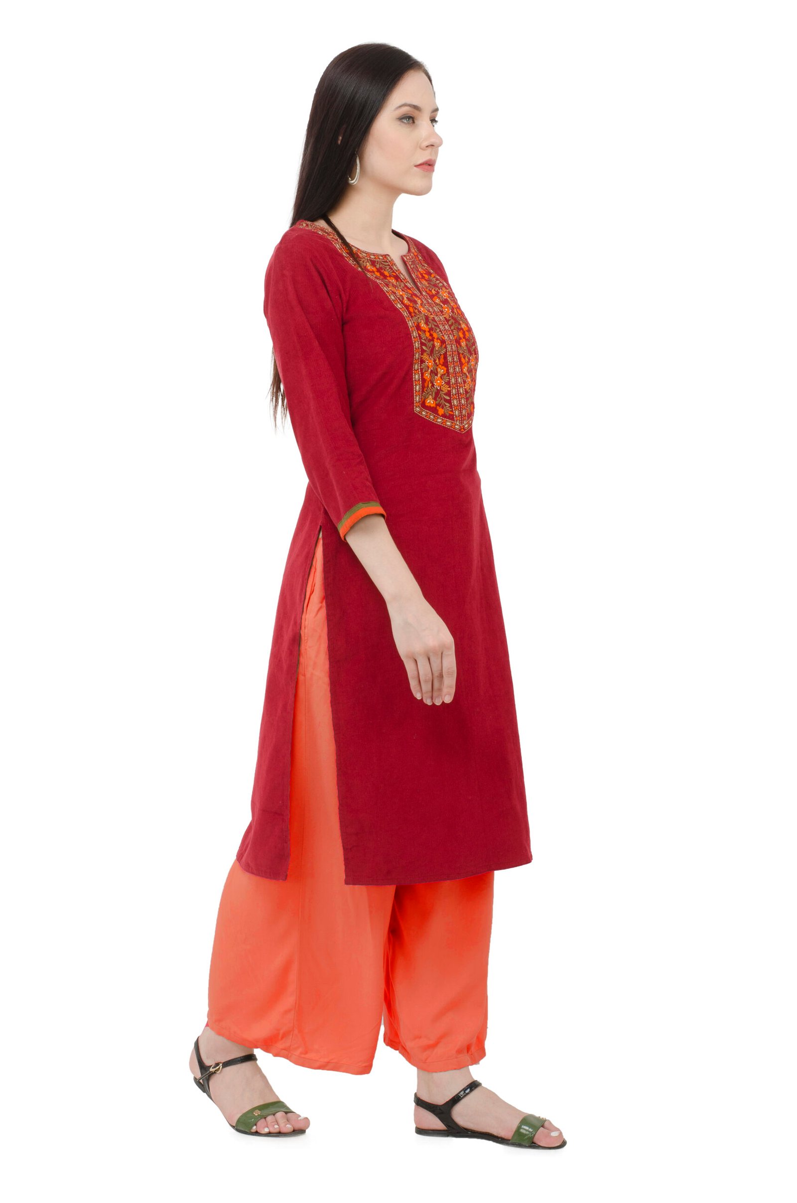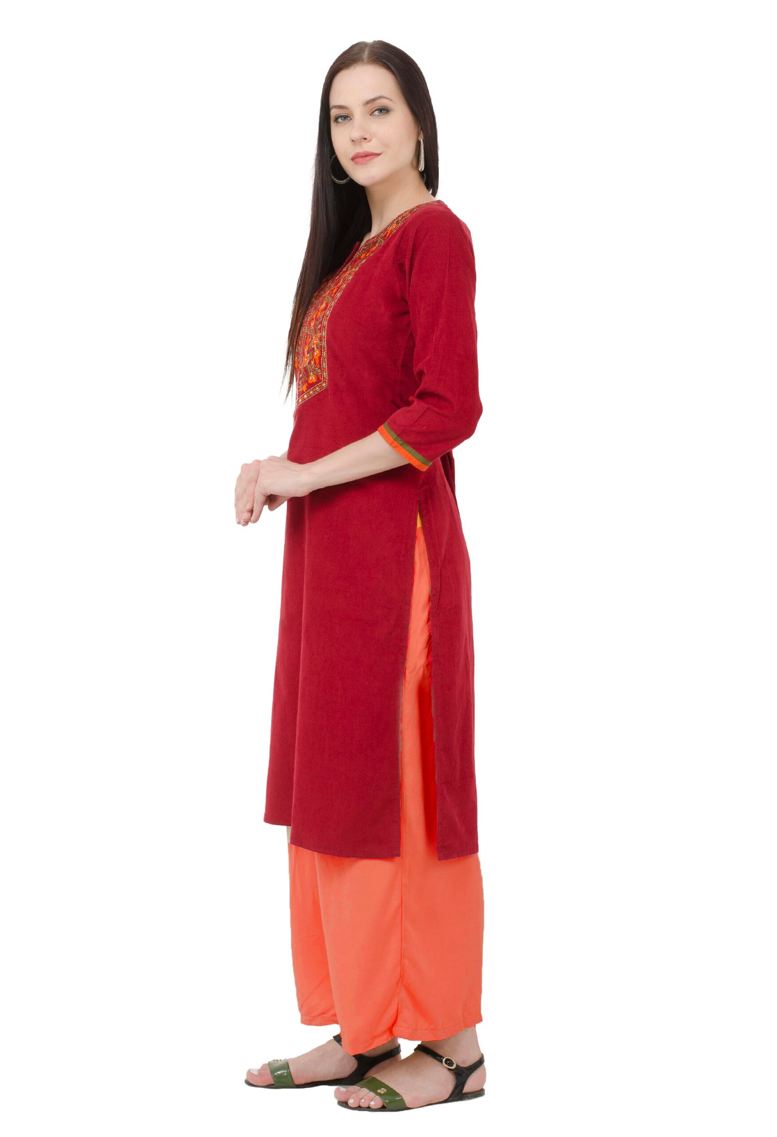 Be the first to review “Maroon Corduray Embroidred Stylish Straight Kurta, Kurti for Women”