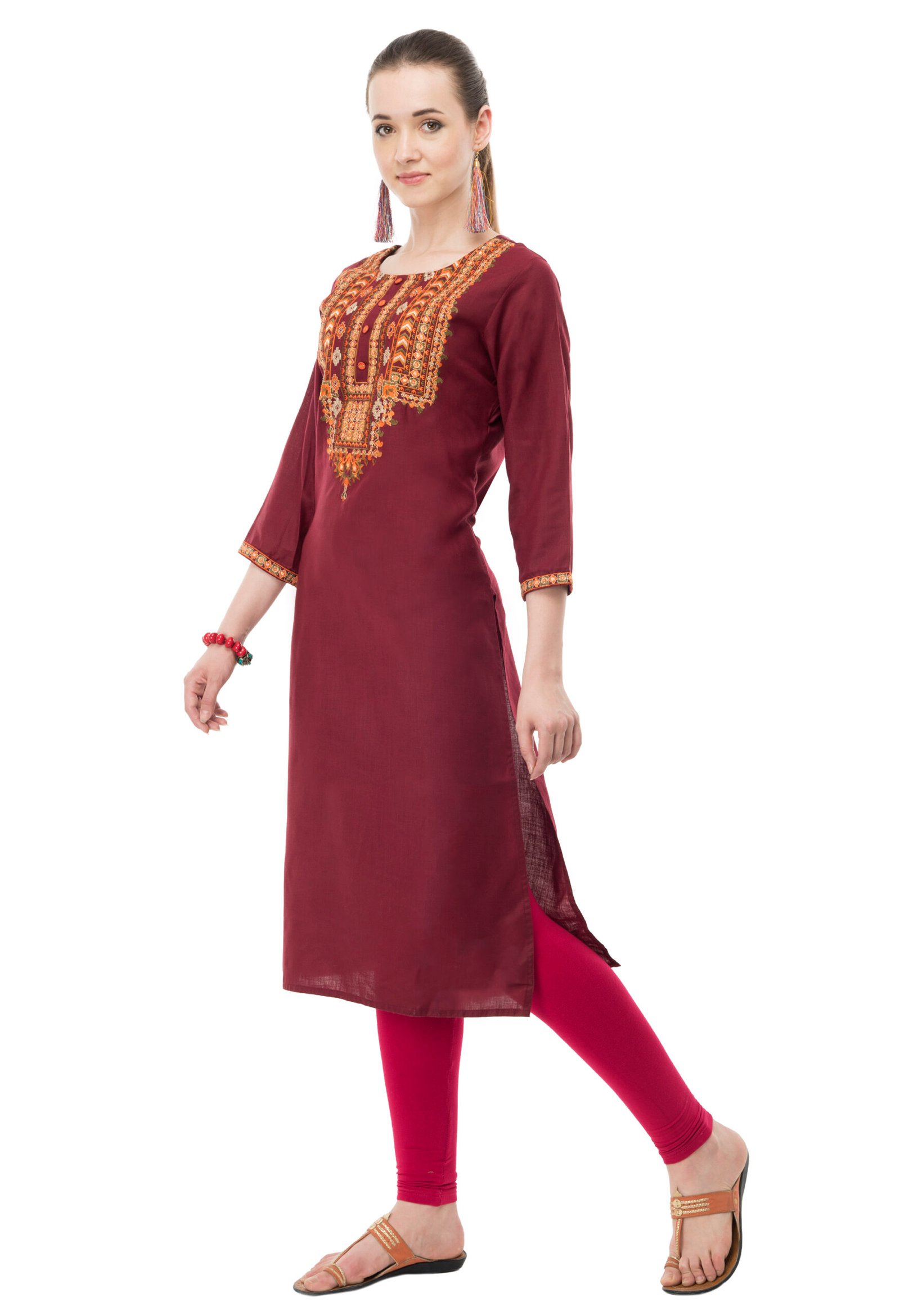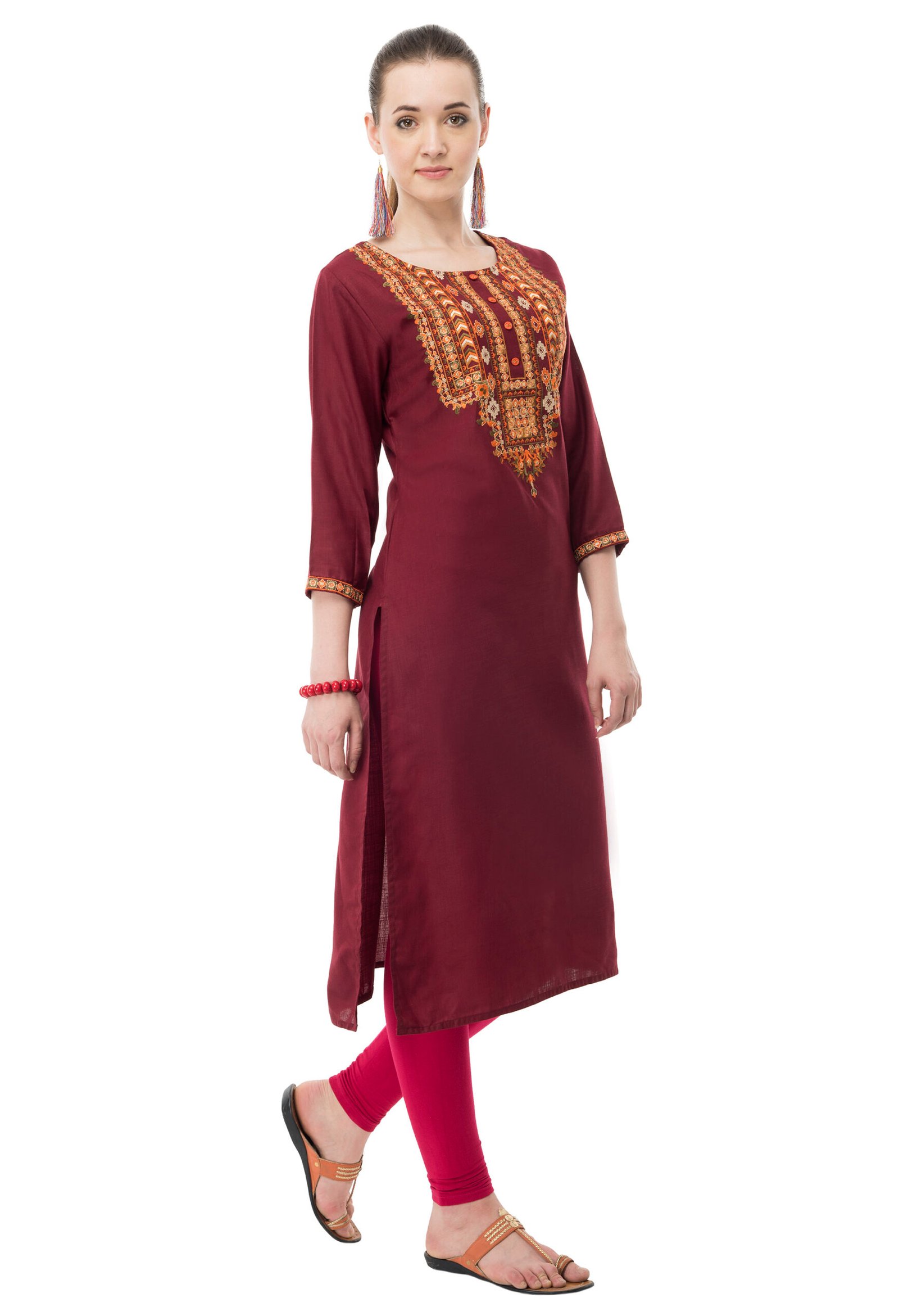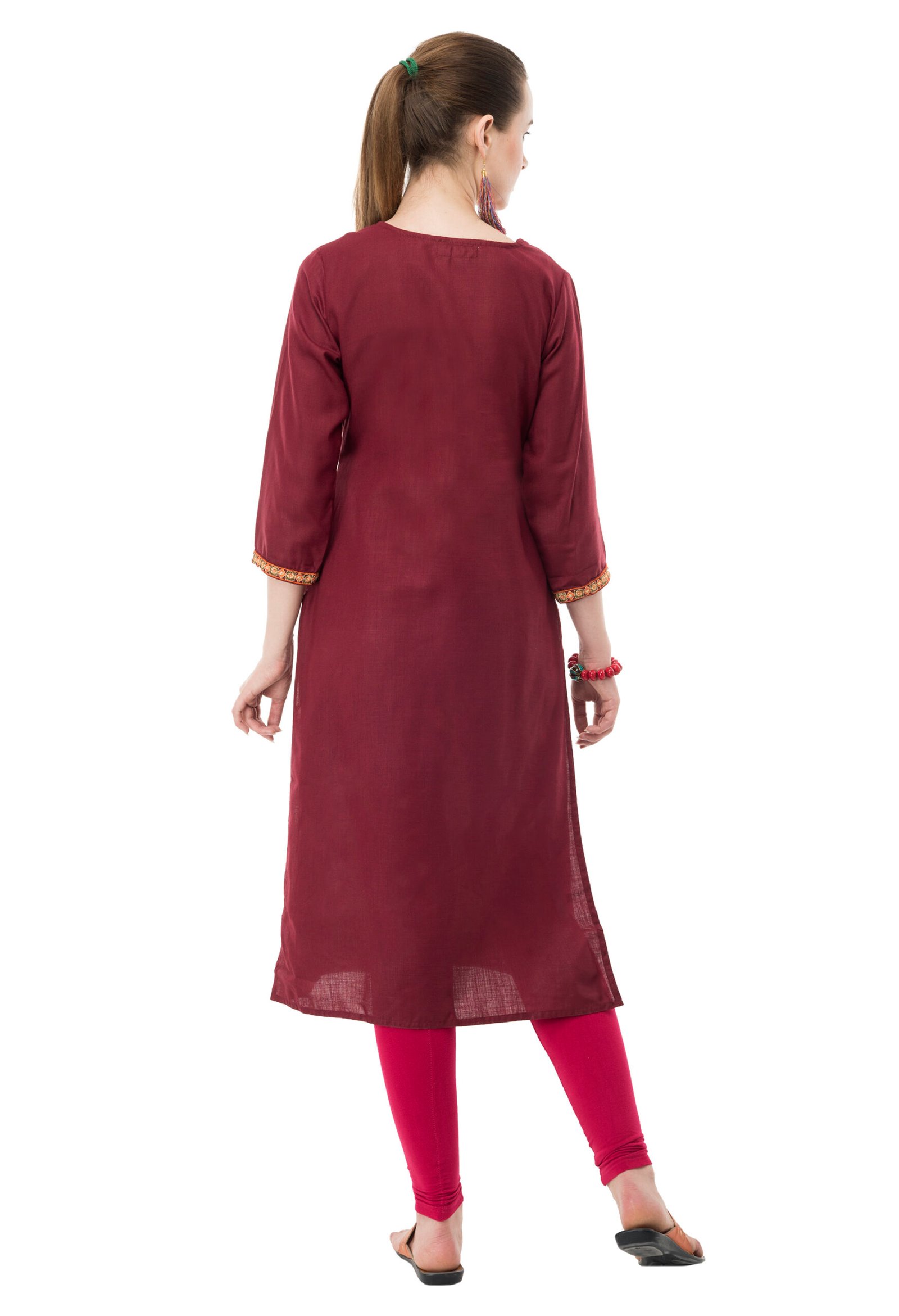 Maroon Poly Viscose Embroidred Stylish Straight Kurta, Kurti for Women