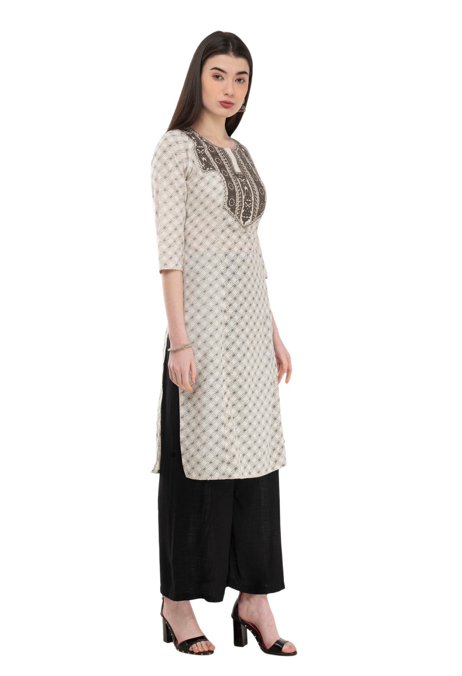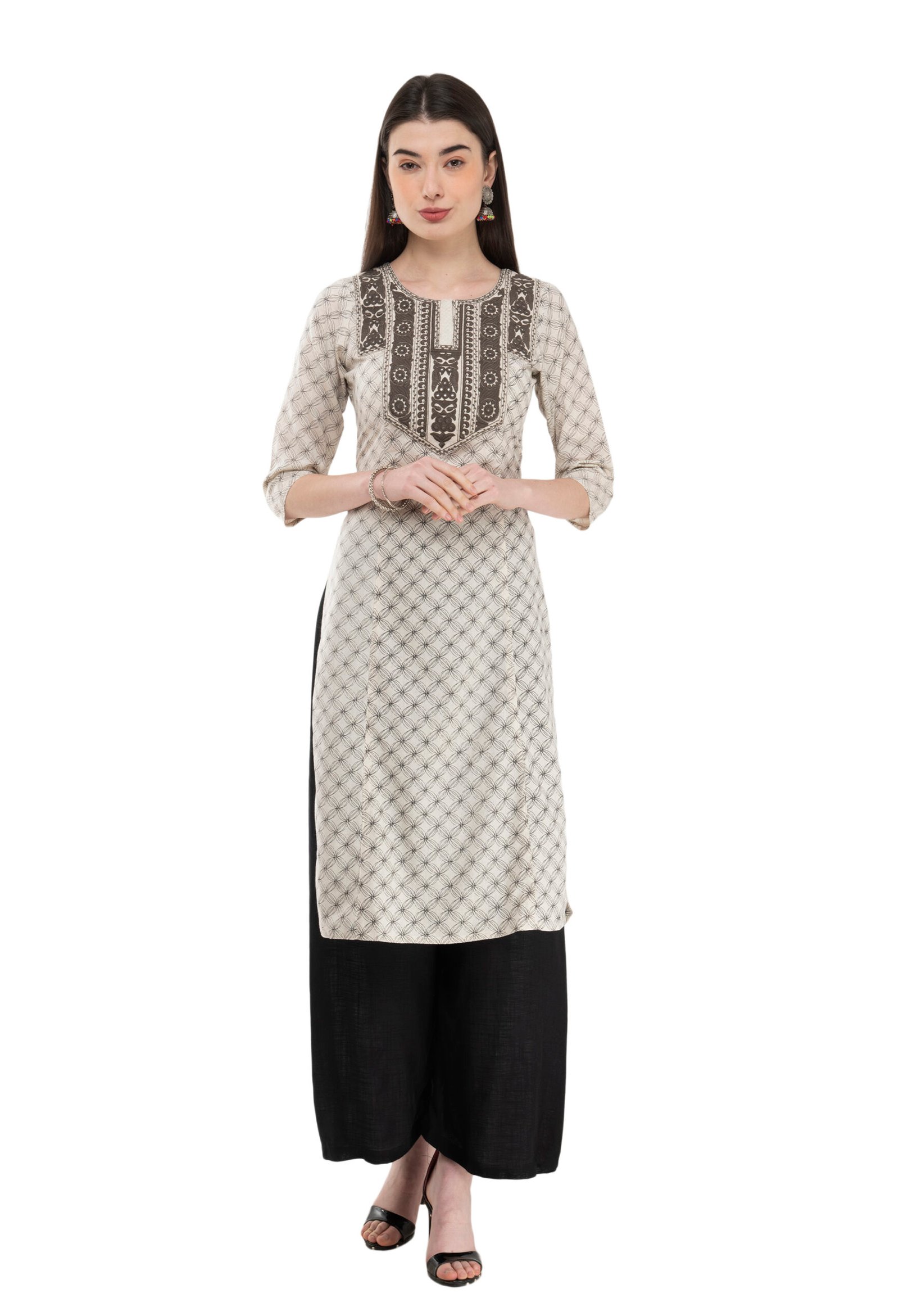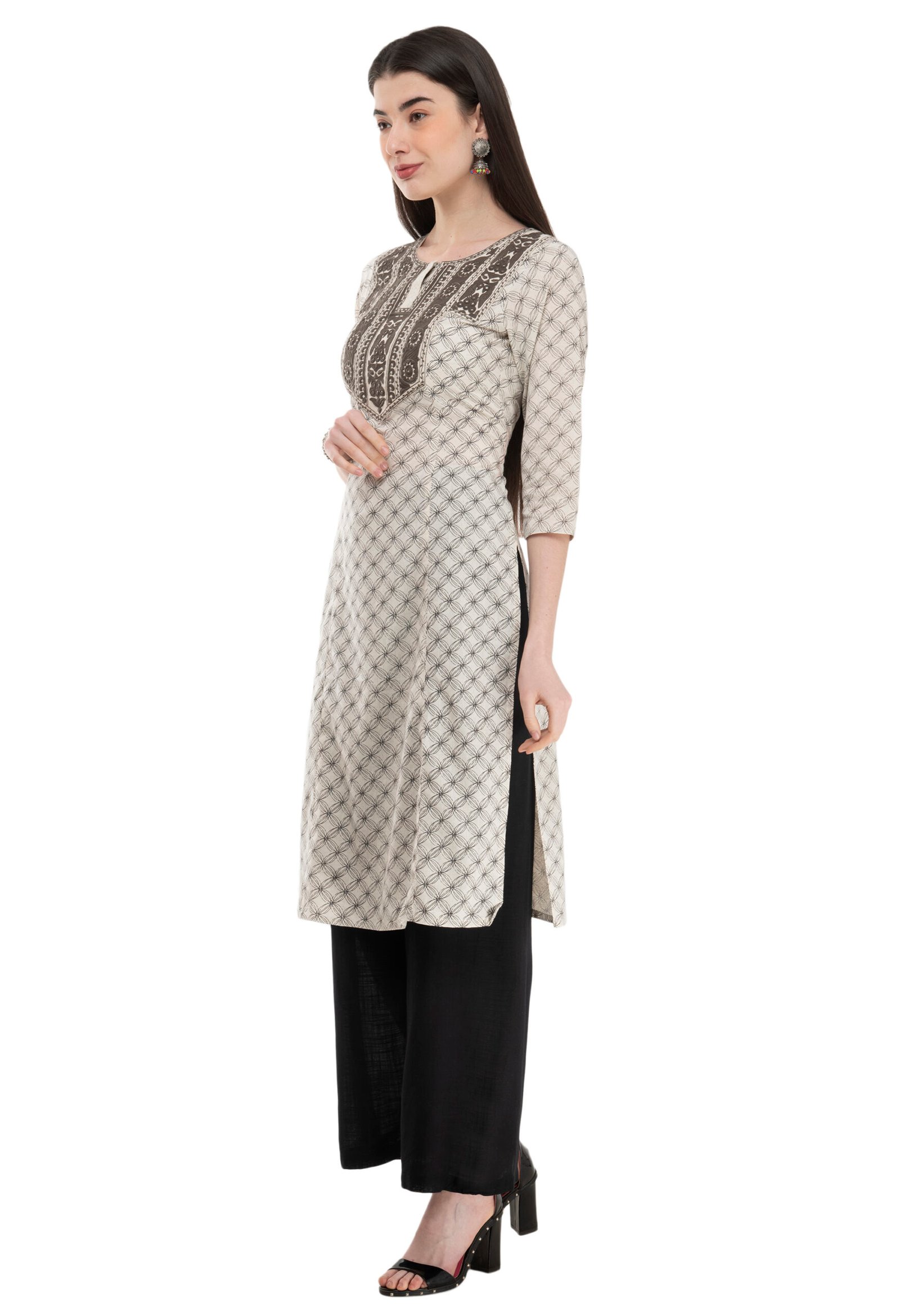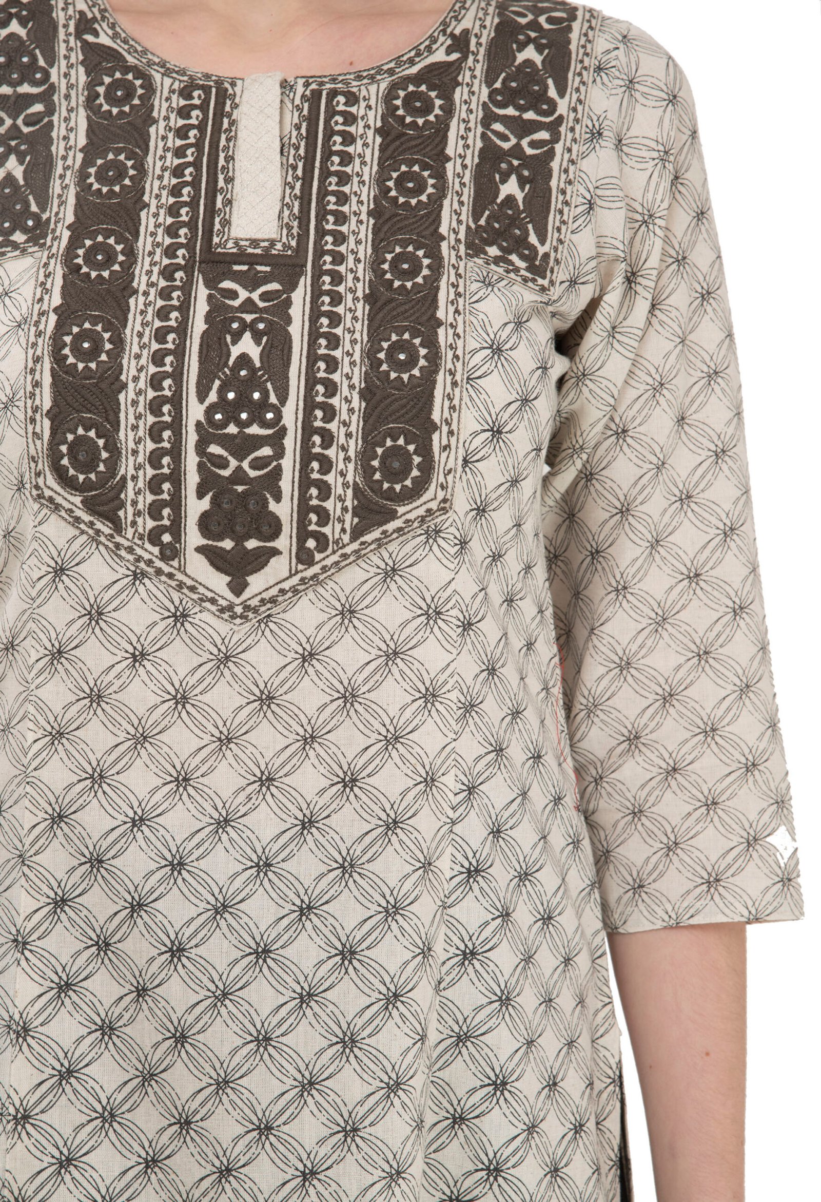 Off White Cotton Embroidred Stylish Straight Kurta, Kurti for Women