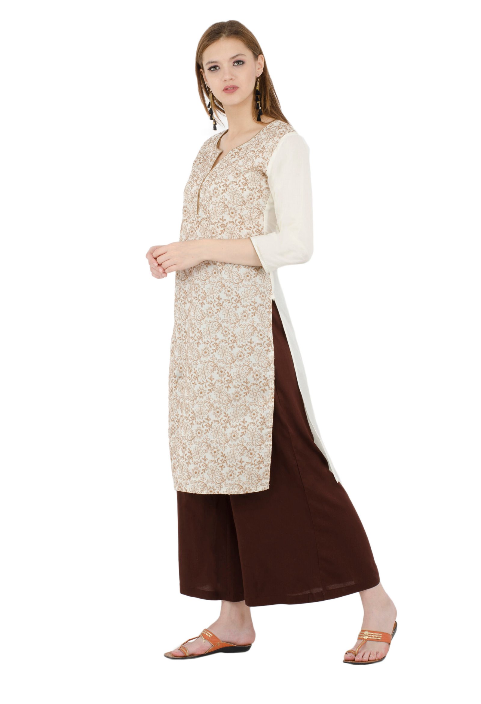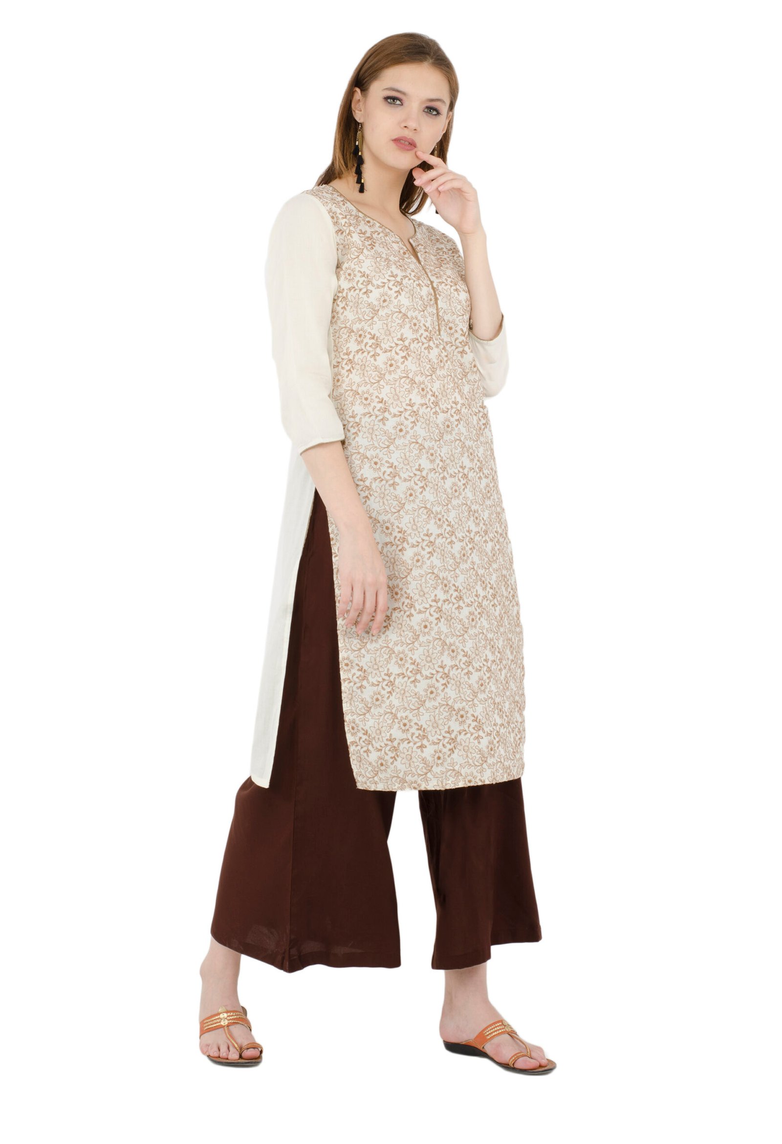 Off White Pure Cotton Embroidred Stylish Straight Kurta, Kurti for Women