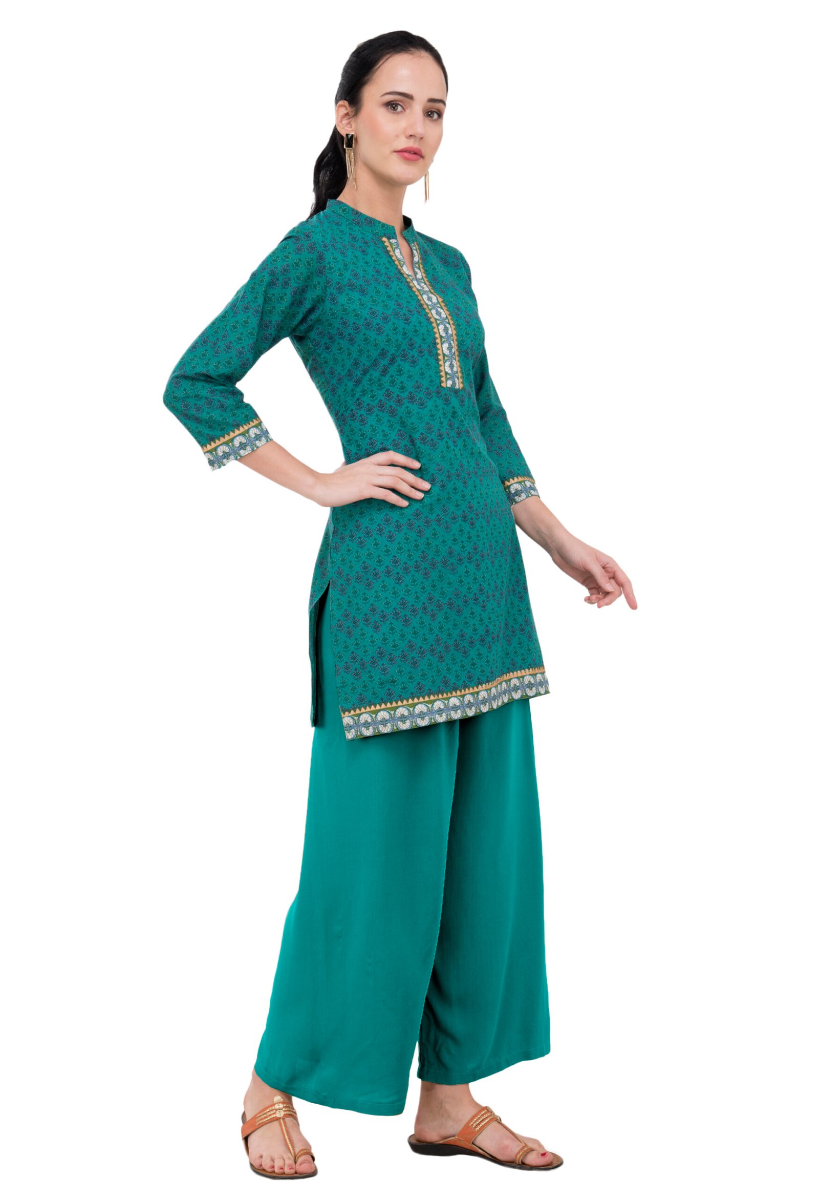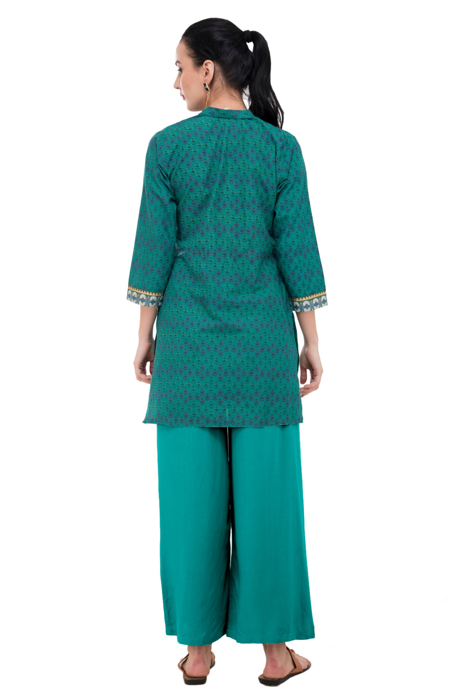 Be the first to review “Teal Green Cotton Printed Stylish Straight Ladies Kurta, Kurti”