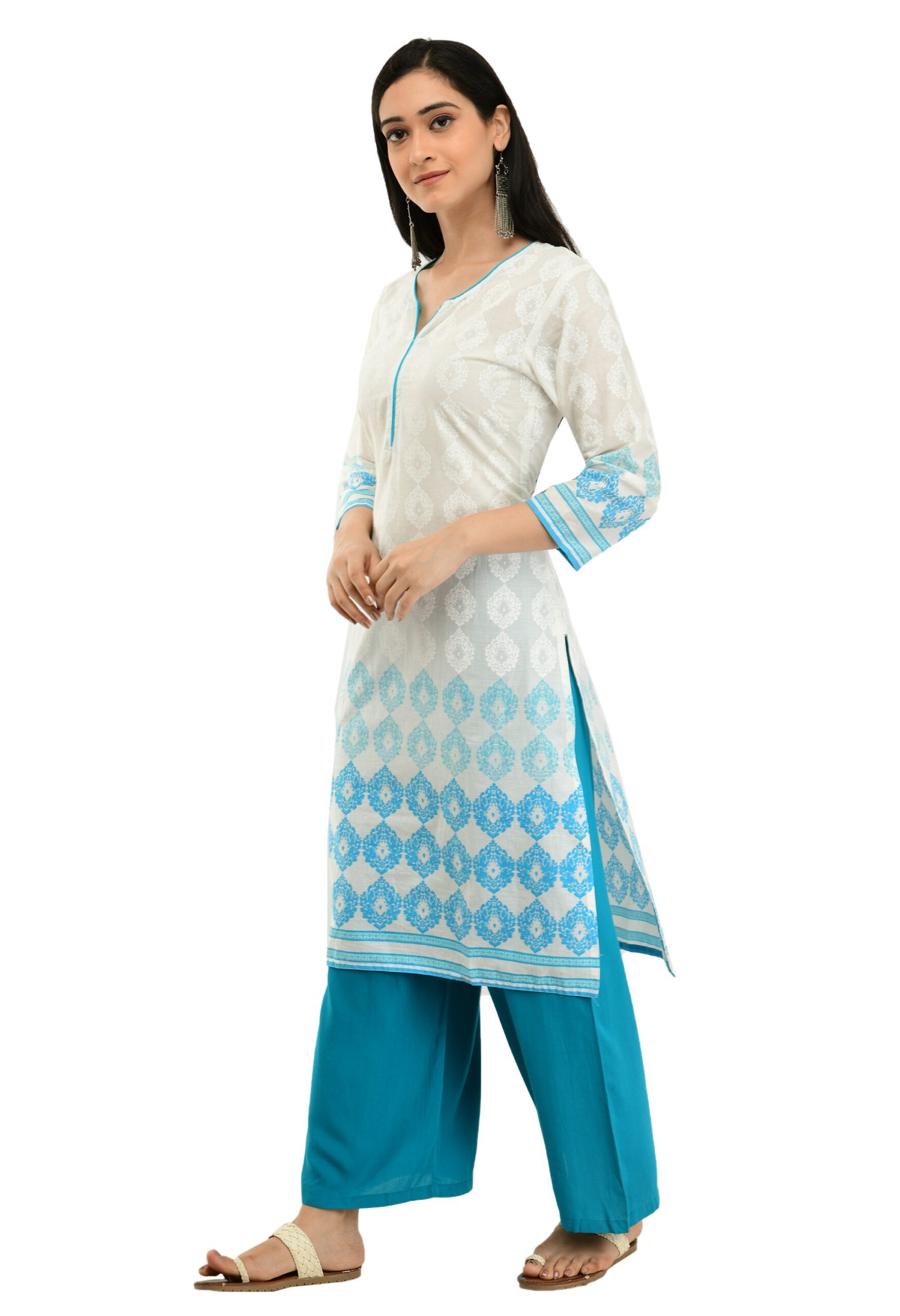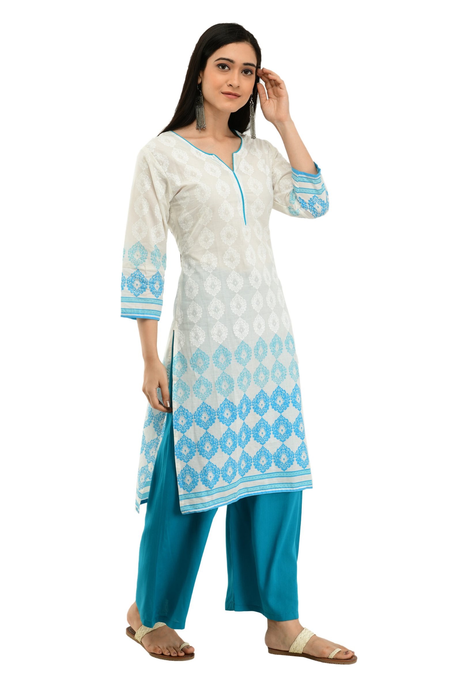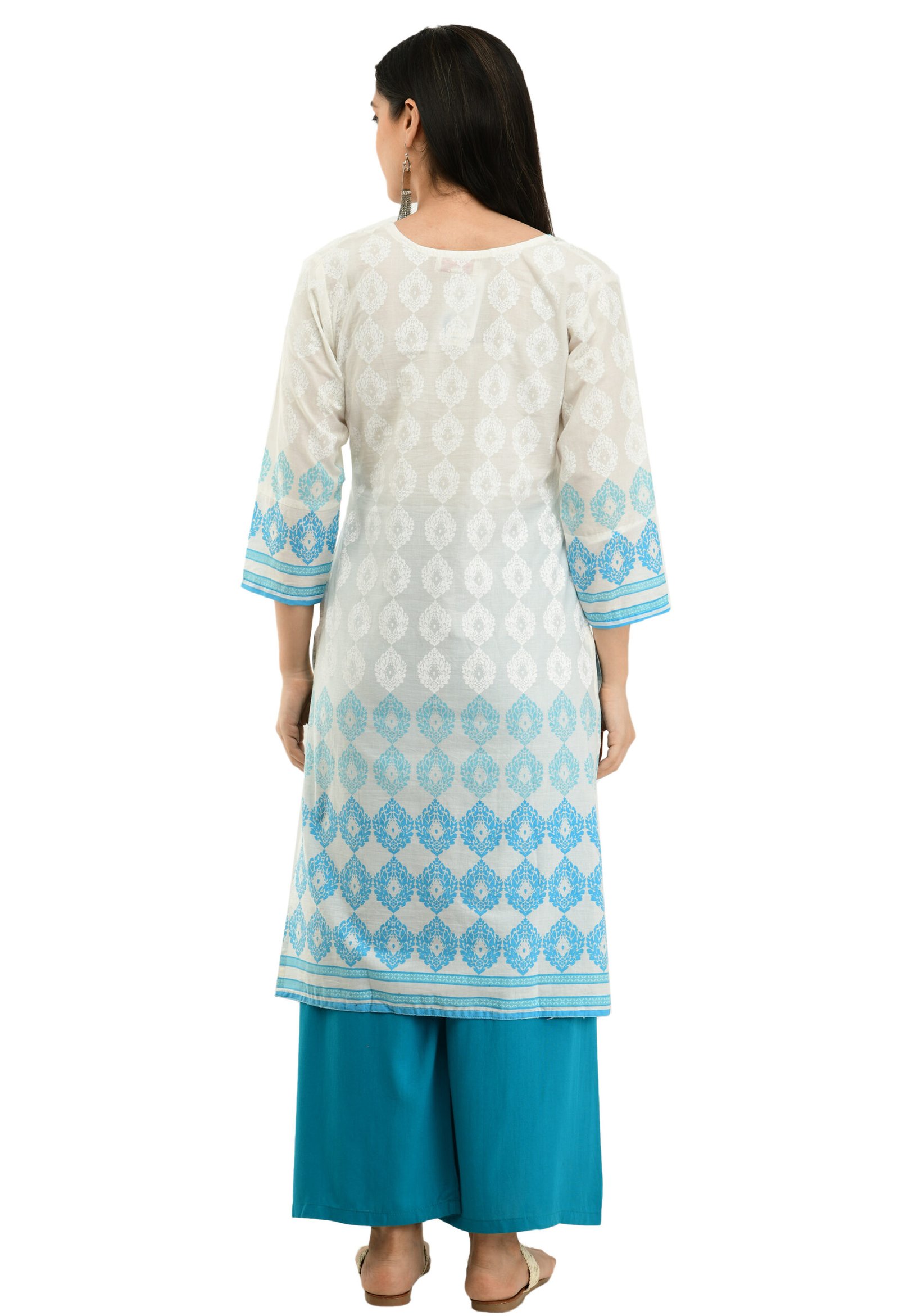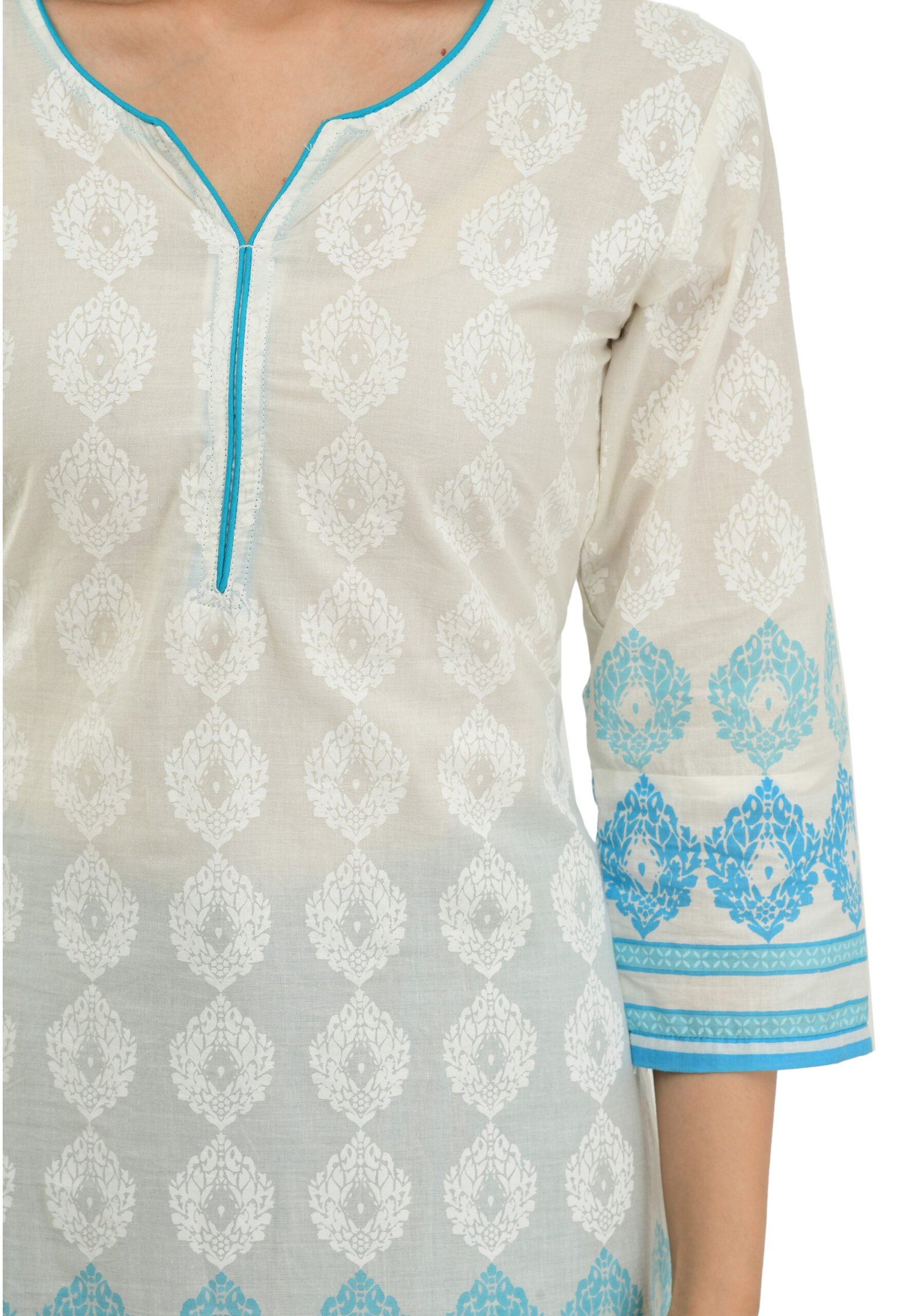 white Cotton Printed Stylish Straight Ladies Kurta, Kurti